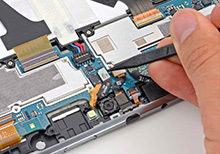 Сотрудник нашего сервисного центра проводит ремонт: заменяет неработоспособную часть работоспособной качественной частью